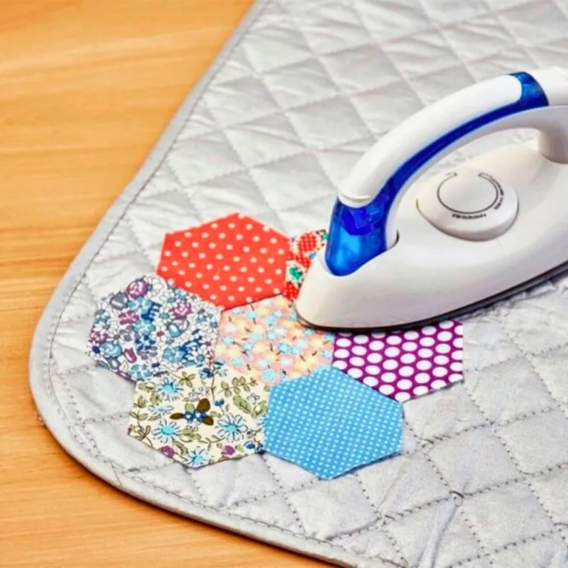 Flexible y plegable, perfecta para llevarla en la maleta o en tu bolsa de costura. Tiene un tamaño de 60 x 55 centímetros para poder planchar de forma cómoda.