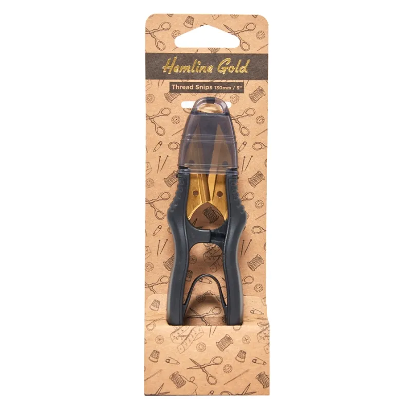 Cortahilos negro de la marca Hemline Gold con cuchillas doradas de acero inoxidable extra afiladas.
