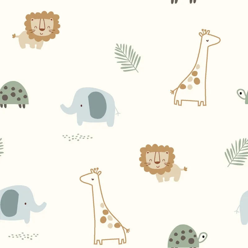 & Free ShippingPopelín de algodón con estampado de pequeños leones, elefantes, tortugas y jirafas sobre fondo blanco roto. Una tela muy dulce y delicada perfecta para prendas y complementos infantiles.