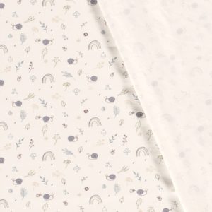 Punto de camiseta caracoles, arcoiris y plantas blanco roto12,00 €
