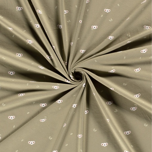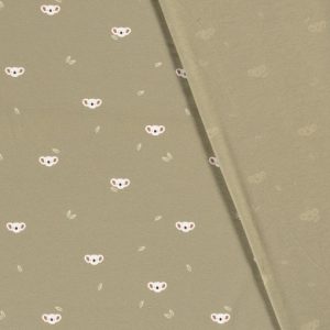 & Free ShippingTejido de punto de algodón con estampado infantil de koalas sobre fondo verde oliva. Su suave tacto y su dulce estampado es ideal para los más peques de la casa.