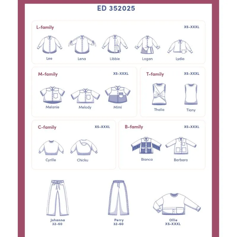 12 nuevos patrones que juegan con camisas, chaquetas, suéteres y tops relajados, ofreciendo infinitas posibilidades de personalización y combinaciones.