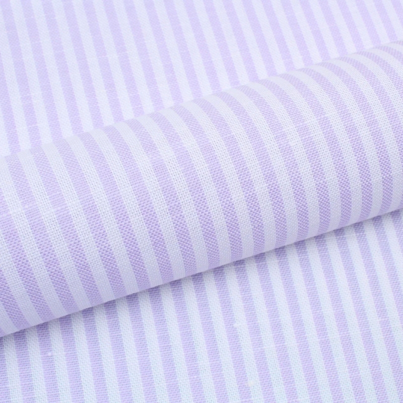 & Free ShippingTela de lino y algodón de rayas verticales de color lila claro y blanco de unos 3 mm de ancho. Combina la elegancia y durabilidad del lino con la suavidad y versatilidad del algodón. Un tejido fresco y con estructura con un diseño que no pasa de moda.