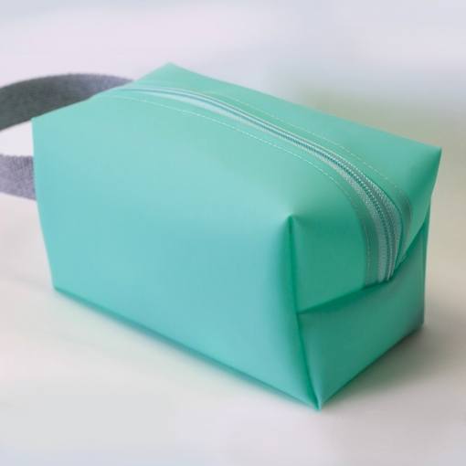Lámina de PVC de 0,5 mm de grosor en color verde agua.  Es impermeable, opaco y mate, perfecto para confeccionar accesorios como bolsos o neceseres.